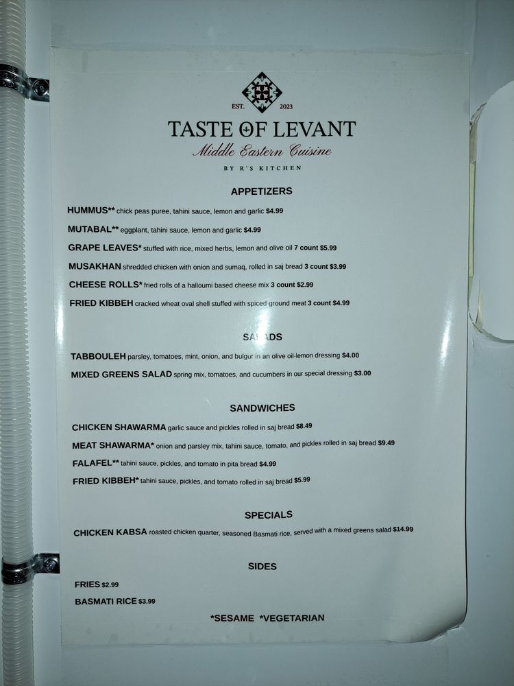 Introducing the Menu at Taste Of Levant